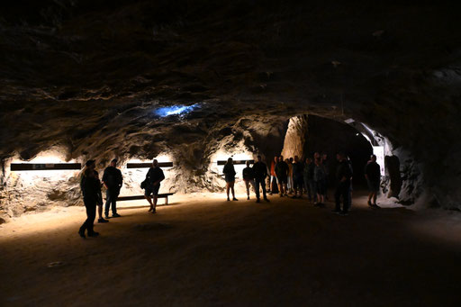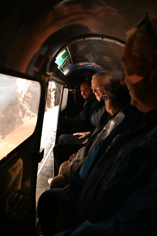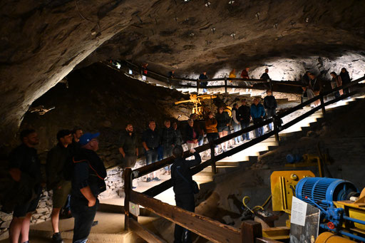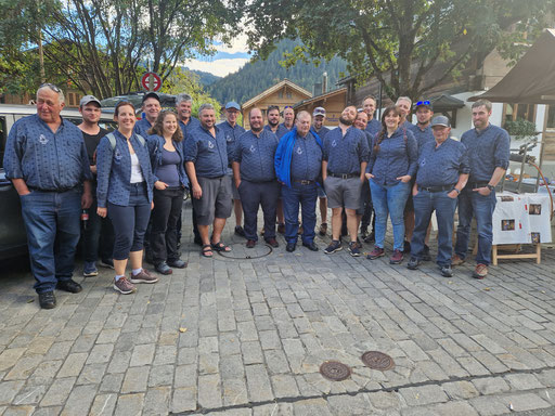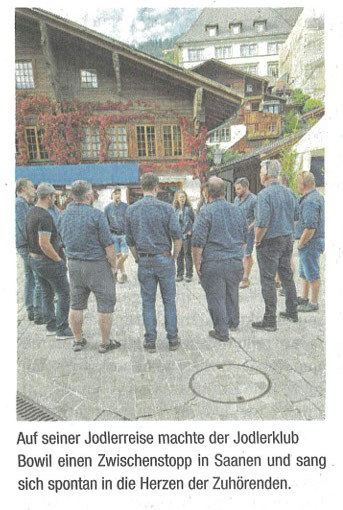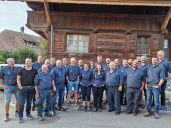 Unsere diesjährige Jodlerreise führte uns nach Bex, in die Salzmine. Während einer Führung durch das Bergwerk konnten wir viele spannende Eindrücke zur Gewinnung des Schweizer Alpensalz sammeln. Zusammen mit der Trachtengruppe Gurzelen, welche wir per Zufall dort antrafen, sangen wir "D'Lüt im Dorf" in der Mine. Was für eine wunderbare, akustische Stimmung dort war, ist kaum zu beschrieben. Nach der Führung assen wir draussen bei herrlich, warmem Herbstwetter unsere mitgebrachte Hamme und Züpfe. Nach der Verpflegung fuhren wir mit dem Car durch die Waadtländer Alpen über den Col des Mosses nach Saanen. Dort fand der Alpenkäse- und Glockenmarkt statt. Wir sangen einige Lieder und durften Alpkäse probieren. Unsere Reise führten uns danach zum Restaurant Pintli in Mirchel. Dort liessen wir den Tag bei einem Abendessen ausklingen.